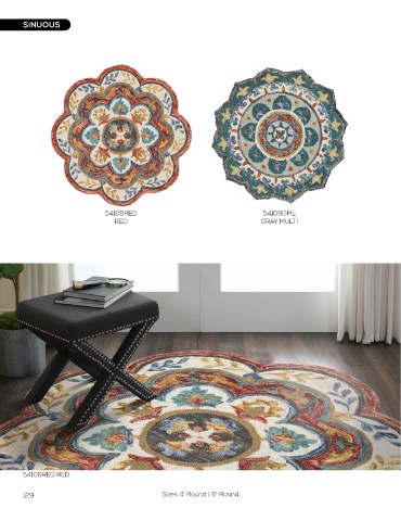 SINUOUS SINUOUS NEW 54108RED 54109GML 54110RED 54111BLU RED GRAY MULTI RED BLUE 54112IVO 54113GRY IVORY GRAY 54108RED RED 129 Sizes 4' Round | 6' Round Sizes 4' Round | 6' Round 130