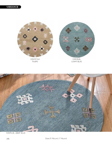 VIBRANCE VIBRANCE 03570TAU 03571LBL TAUPE LIGHT BLUE 03563CHA CHARCOAL 03562BLU 03563CHA BLUE CHARCOAL 03571LBL LIGHT BLUE 145 Sizes 5' Round | 7' Round Sizes 5' Round | 7' Round 146
