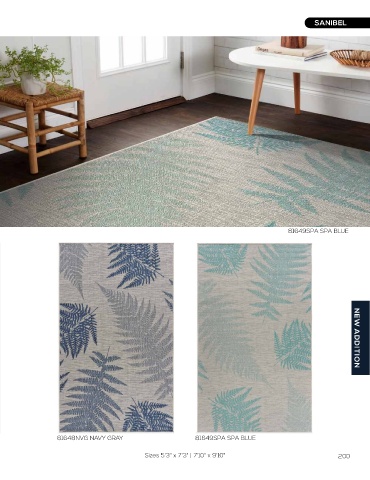 SANIBEL SANIBEL 81646NVG NAVY GRAY 81647OAS OASIS 81649SPA SPA BLUE 81646NVG NAVY GRAY 81648NVG NAVY GRAY 81649SPA SPA BLUE NEW ADDITION 199 Sizes 5'3" x 7'3" | 7'10" x 9'10" Sizes 5'3" x 7'3" | 7'10" x 9'10" 200