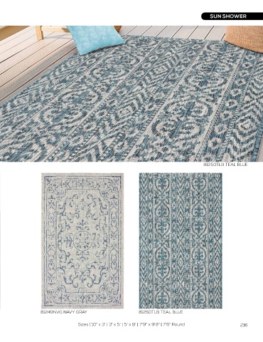 215 Sizes 1'10" x 3' | 3' x 5' | 5' x 8' | 7'9" x 9'9" | 7'6" Round Sizes 1'10" x 3' | 3' x 5' | 5' x 8' | 7'9" x 9'9" | 7'6" Round 216