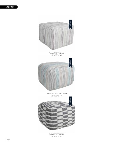 ALTAIR ALTAIR NEW 34045GRY GRAY 18" x 18" x 14" NEW 34046TUR TURQUOISE 18" x 18" x 14" NEW 34065GRY GRAY 34046TUR TURQUOISE 18" x 18" x 14" 337 338