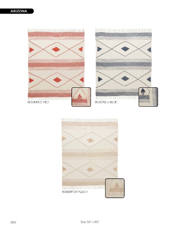 ARIZONA ARIZONA 80186RED RED 80187BLU BLUE 80188PCH PEACH 80187BLU BLUE 369 Size 50" x 60" Size 50" x 60" 370