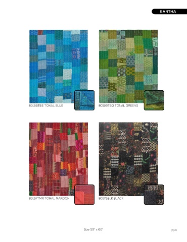 KANTHA KANTHA 80151MLT MULTI 80152MLT MULTI 80155TBE TONAL BLUE 80156TBG TONAL GREENS 80153MLT MULTI 80154MLT MULTI 80157TMR TONAL MAROON 80175BLK BLACK 393 Size 50" x 60" Size 50" x 60" 394