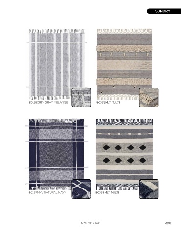 SUNDRY SUNDRY 80150MLT MULTI 80181NAT NATURAL 80192GRM GRAY MELANGE 80165MLT MULTI 80182MLT MULTI 80191NAV NAVY 80167NNV NATURAL NAVY 80168MLT MULTI 405 Size 50" x 60" Size 50" x 60" 406