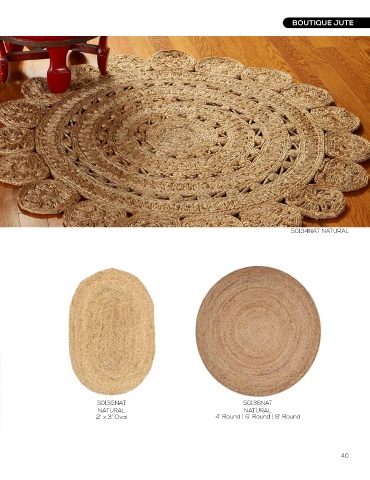 BOUTIQUE JUTE BOUTIQUE JUTE 12046NAT 50134NAT NATURAL NATURAL 4' Round | 6' Round | 8' Round 4' Round | 6' Round | 8' Round 50134NAT NATURAL 50135NAT 50136NAT NATURAL NATURAL 2' x 3' Oval 4' Round | 6' Round | 8' Round 50136NAT NATURAL 39 40