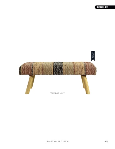 BENCHES BENCHES NEW NEW 02872MLT MULTI NEW 02874MLT MULTI 02873MLT MULTI 457 Size 47" W x 16" D x 18" H Size 47" W x 16" D x 18" H 458