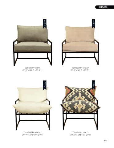 CONSOLE CHAIRS NEW NEW NEW 02859GRY GRAY 02860CRM CREAM 31" W x 30" D x 27.5" H 31" W x 30" D x 27.5" H NEW NEW NEW ADDITION 39" W x 13" D x 30" H 02816BRW BROWN 02861WHT WHITE 02862MLT MULTI 30" W x 27.5" D x 24" H 30" W x 27.5" D x 24" H 469 470