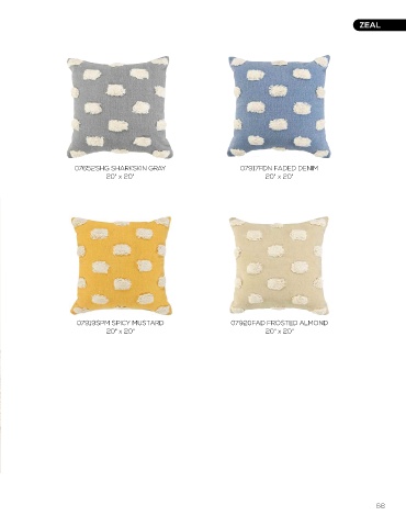VITAL ZEAL 07860EVD EVERGLADE 07860EVD EVERGLADE 07652SHG SHARKSKIN GRAY 07917FDN FADED DENIM 20" x 20" 14" x 36" 20" x 20" 20" x 20" 07919SPM SPICY MUSTARD 07920FAD FROSTED ALMOND 20" x 20" 20" x 20" 07860EVD EVERGLADE 67 68