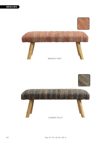 BENCHES BENCHES 31040MLT MULTI 02878MLT MULTI 31042MLT MULTI 02880MLT MULTI 83 Size 47" W x 16" D x 18" H Size 47" W x 16" D x 18" H 84